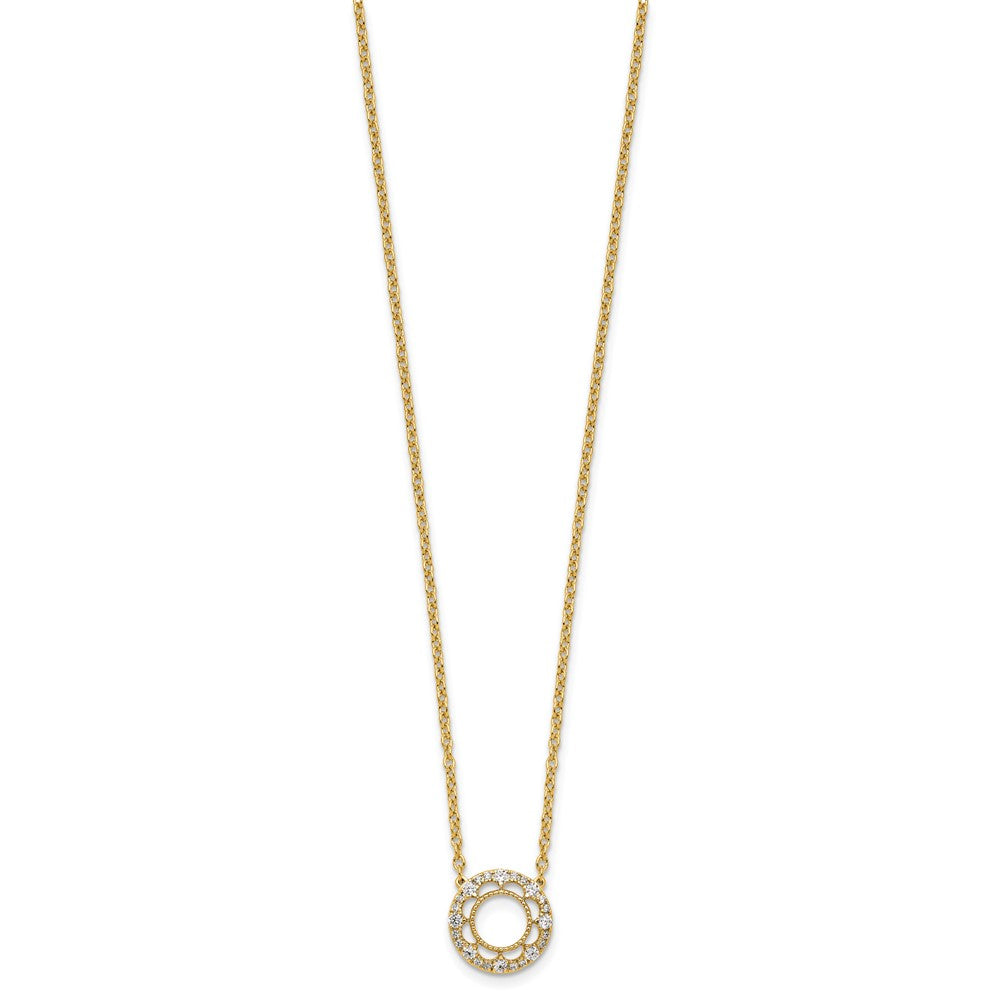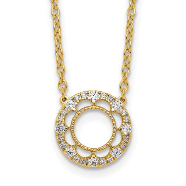 14k Gold Floral Circle Necklace with 1/4 Carat Diamonds, 18 Inch