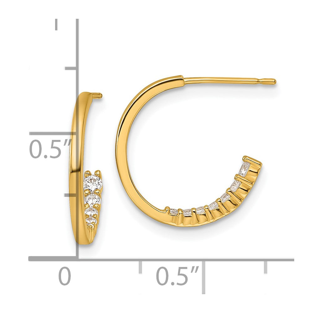 14k Gold Polished J-Hoop Earrings with Sparkling CZ