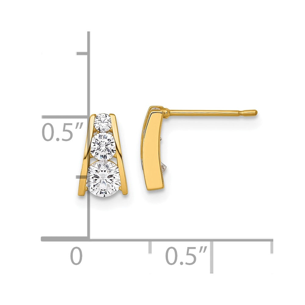 14k Gold Polished Graduated CZ Stud Earrings