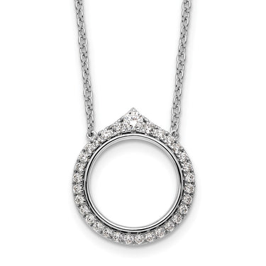 14k White Gold Diamond Circle Necklace - 18 Inch Trendy Layering Piece