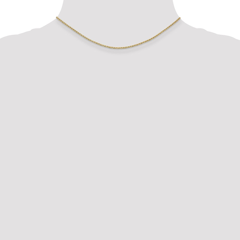 Specifications: Material: Primary - Purity:14K|Finish:Polished|Length of Item:14 in|Chain Length:14 in|Chain Type:Anchor|Chain Width:1.5 mm|Clasp /Connector:Lobster|Feature:Solid|Manufacturing Process:Casted|Material: Primary:Gold|Width of Item:1.5 mm|Product Type:Jewelry|Jewelry Type:Chains|Sold By Unit:Each|Necklace Type:Chain Styles|Gender:Unisex|Profile Type:Flat|Material: Primary - Color:Yellow|Feature 2:Lightweight|Manufacturing Process 2:Machine Made|Chain Type 2:Pendant
