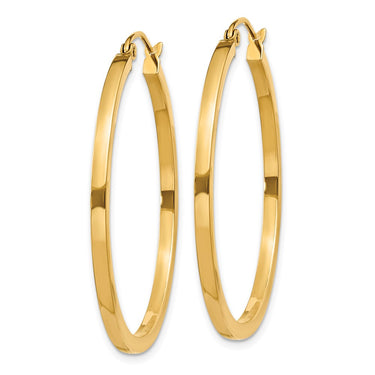 Elevate your look with these striking 14k gold square tube hoop earrings that fuse modern style with bold confidence. Their sleek, geometric design makes them the perfect personal statement pieces that highlight your individuality and flair.