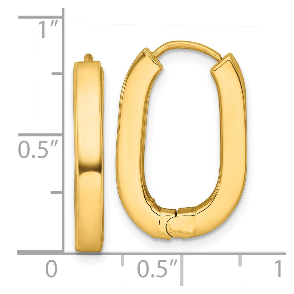 14k Gold Polished Oval Square Tube Hinged Hoop Earrings
