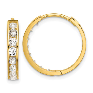 14k Gold Polished Huggie Hoop Earrings with Sparkling CZ