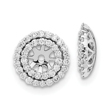 14k White Gold Diamond Double Circle Earring Jackets - Trendy Layered Style