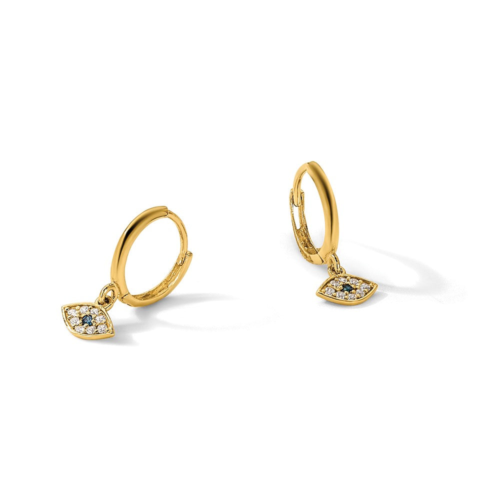 10K Gold Blue and Clear CZ Evil Eye Dangle Hoop Earrings