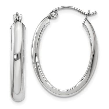 Polished 10k White Gold Oval Tube Hoop Earrings