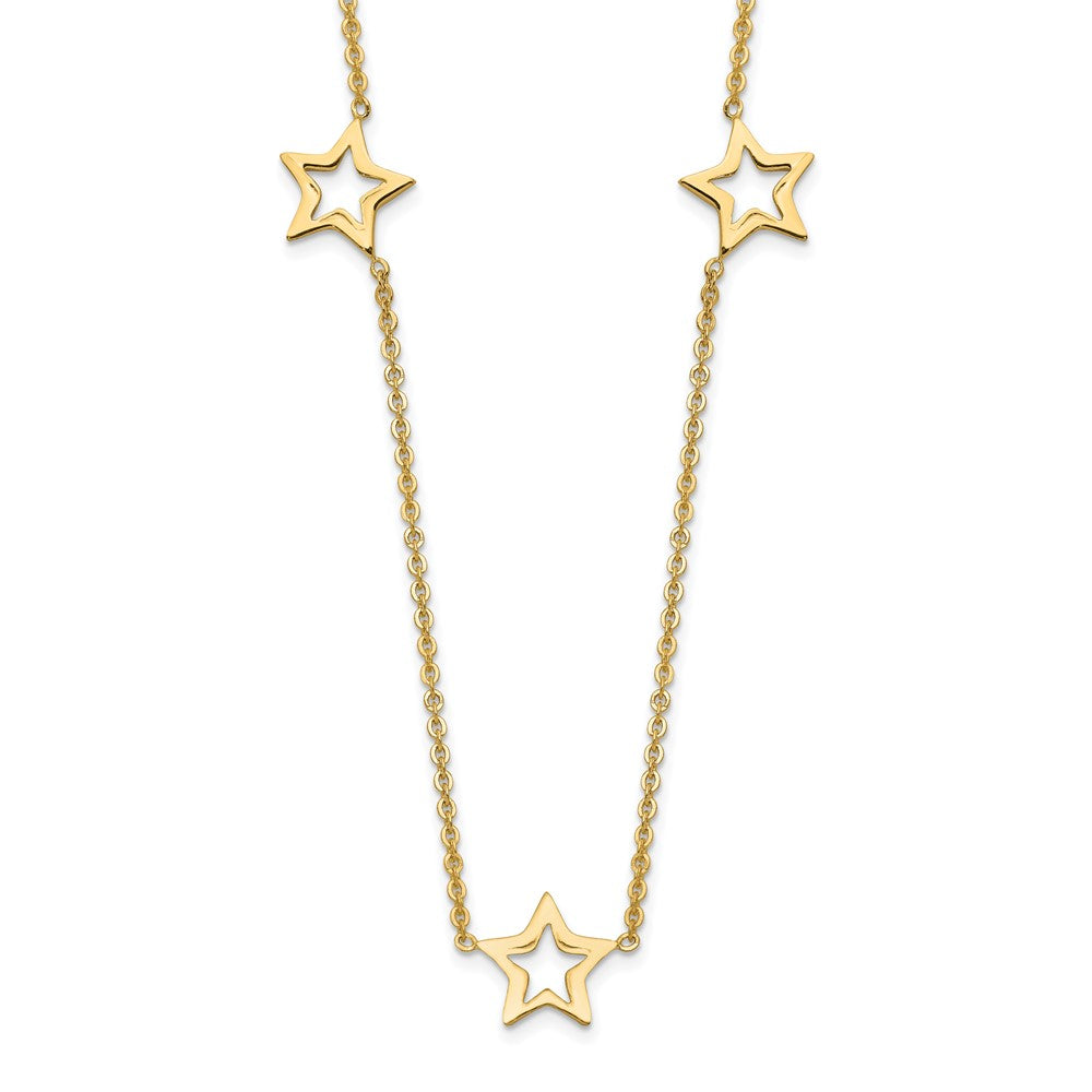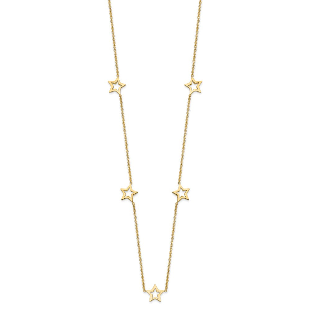 14K Gold Open Stars Necklace with 2-Inch Extender, 18 Inches