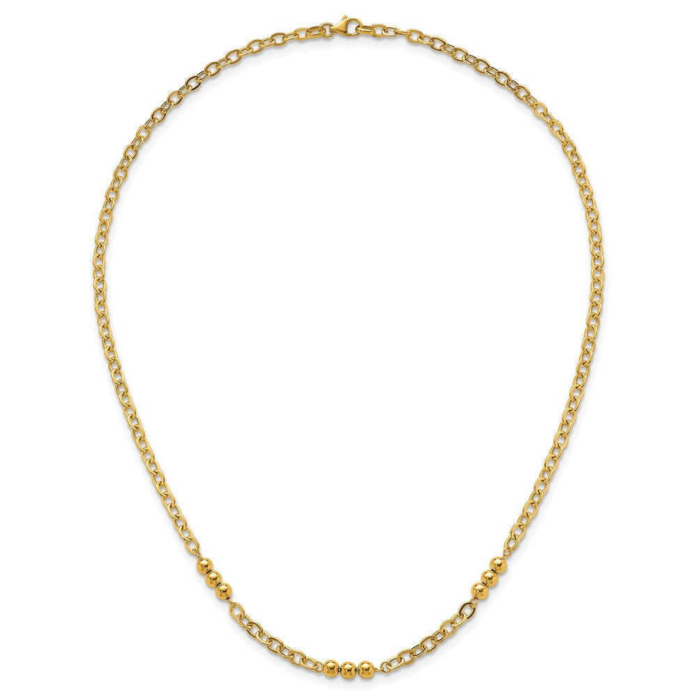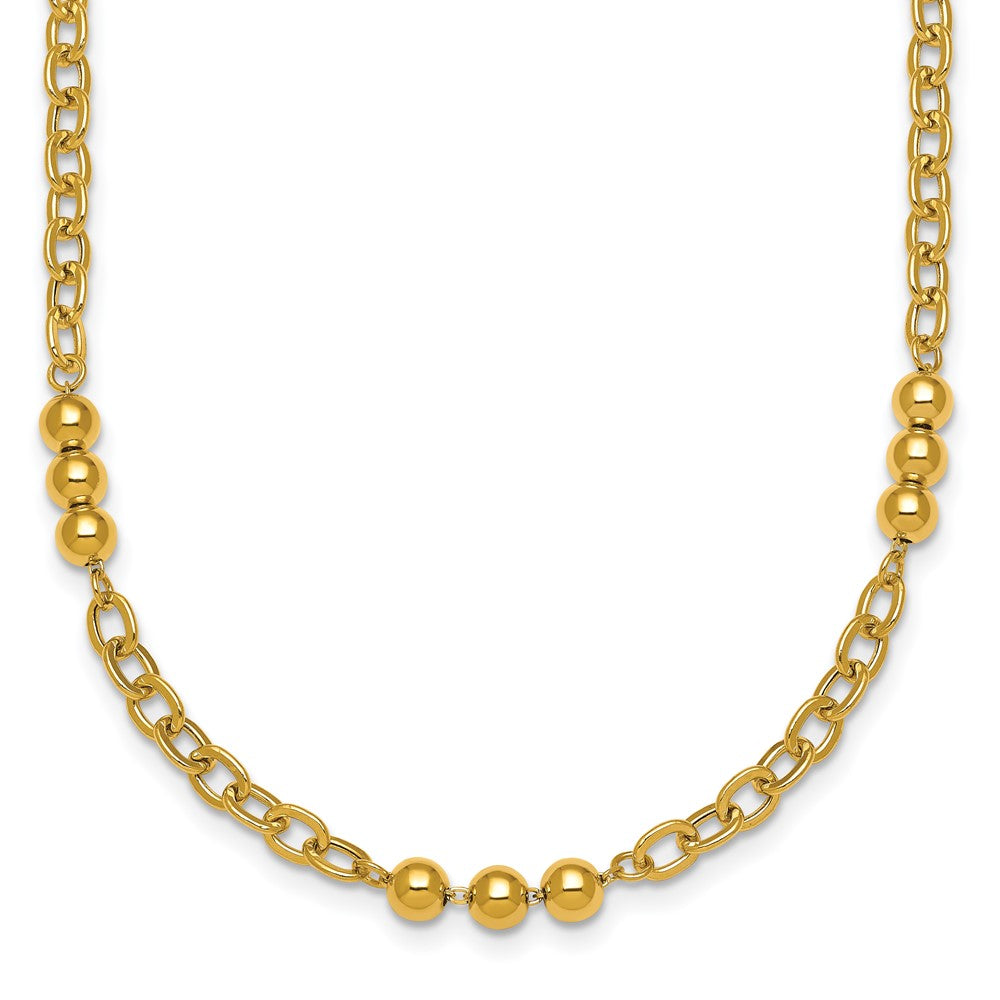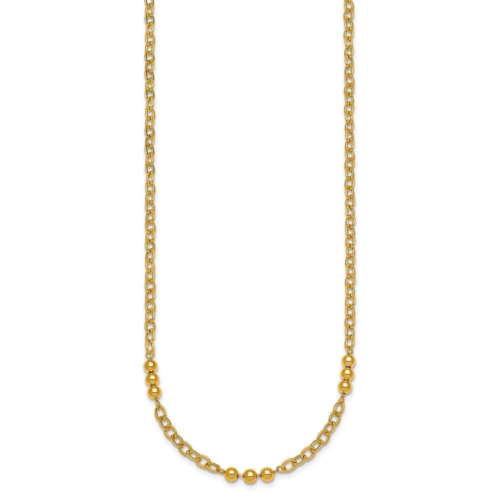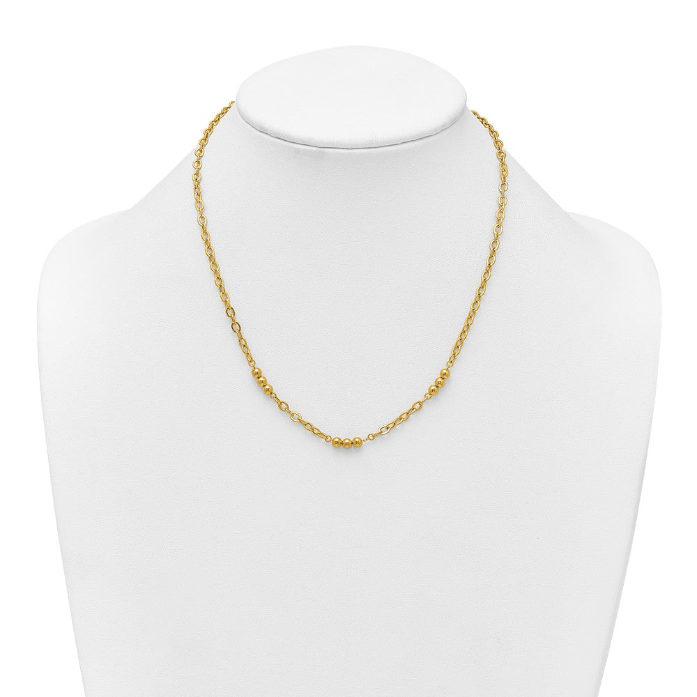 14K Yellow Gold Beaded Cable Link Necklace - 18 inch