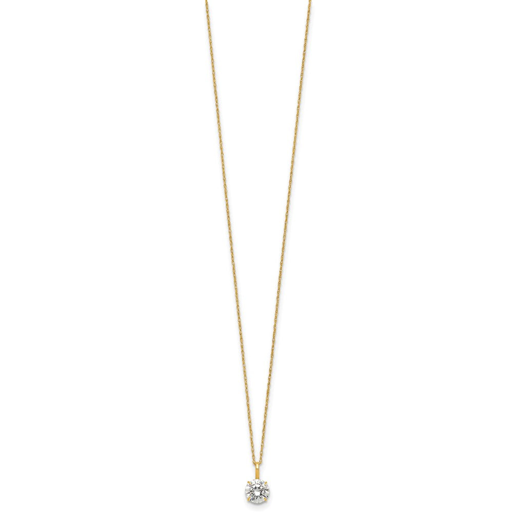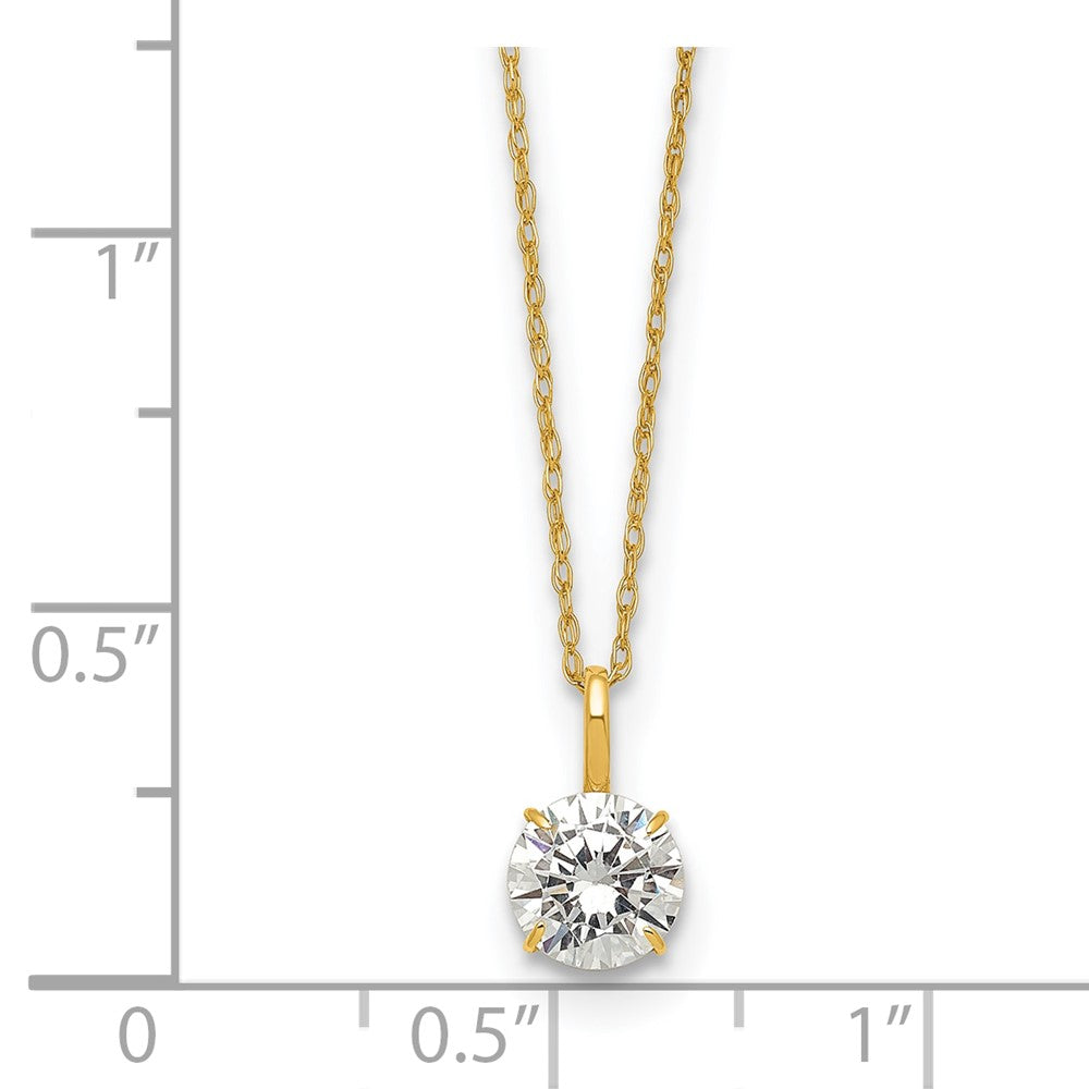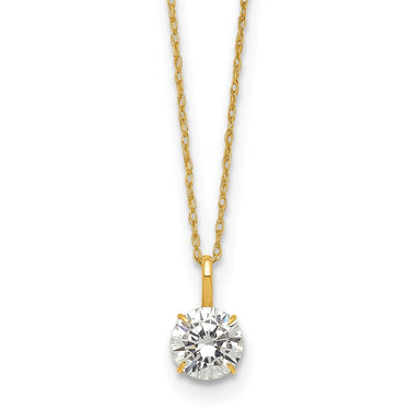 14k Yellow Gold Polished Round CZ Solitaire 18 inch Necklace