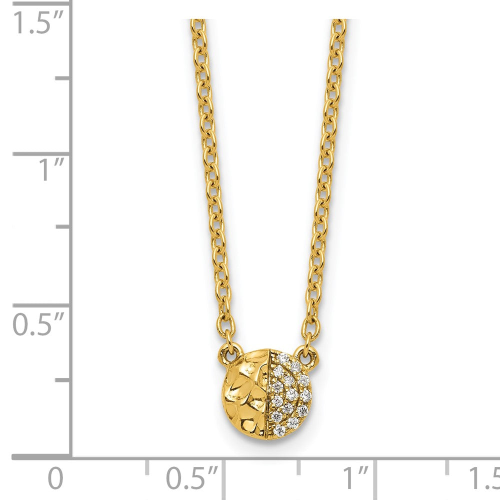 14K Gold Hammered Diamond Disk Necklace - 18 Inch