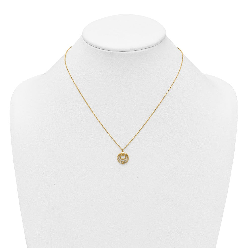 14k Gold Polished and Textured Circle Necklace - 17 Inch Statement Piece