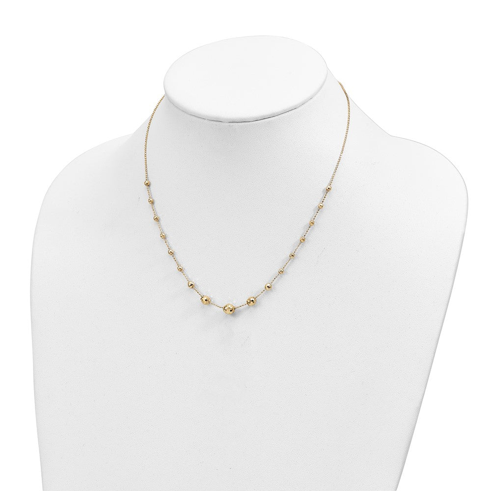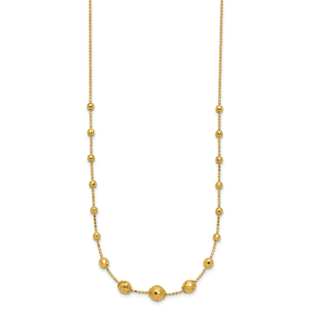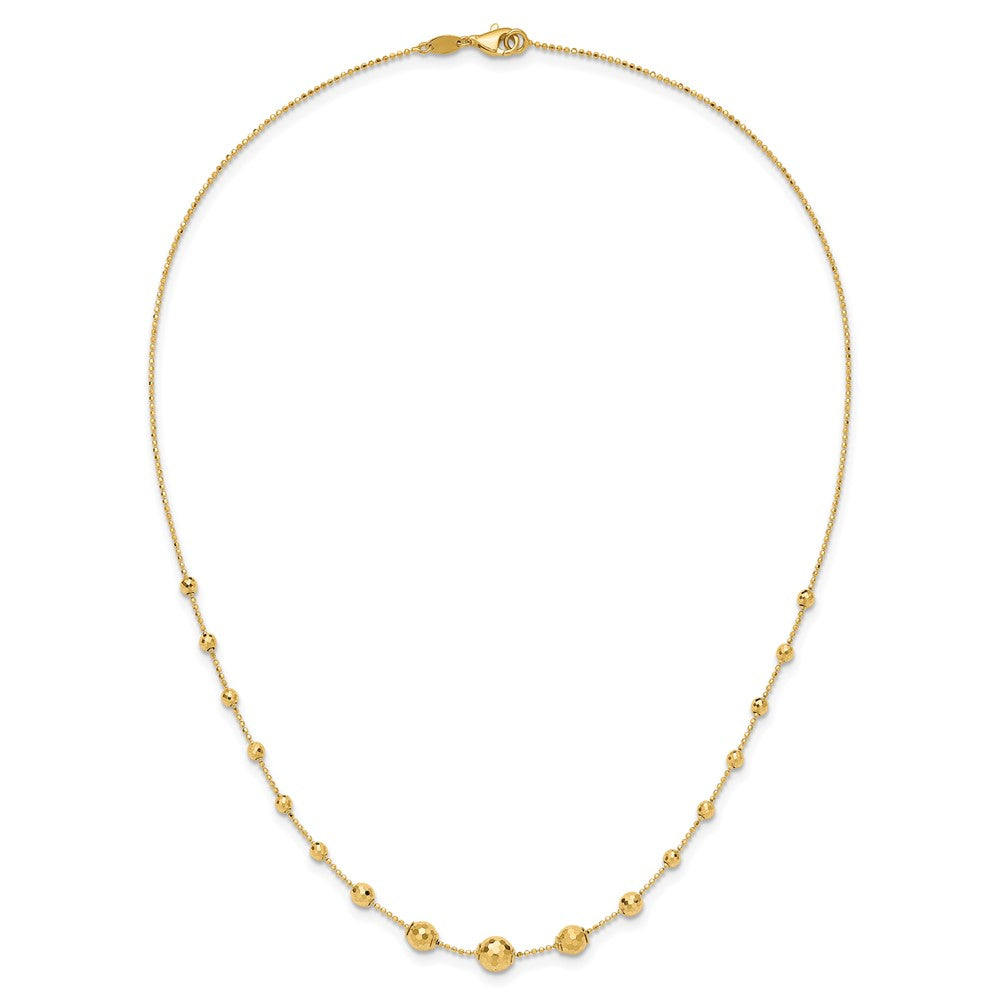 Elevate your style with this stunning 14K gold necklace, featuring a sleek design of polished graduated facet beads that shine with every movement. This piece is all about making a statement, showcasing your unique vibe with its trendy beaded style and urban flair.
