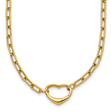 14k Gold Polished Oval Link Bracelet with Heart Clasp, 18