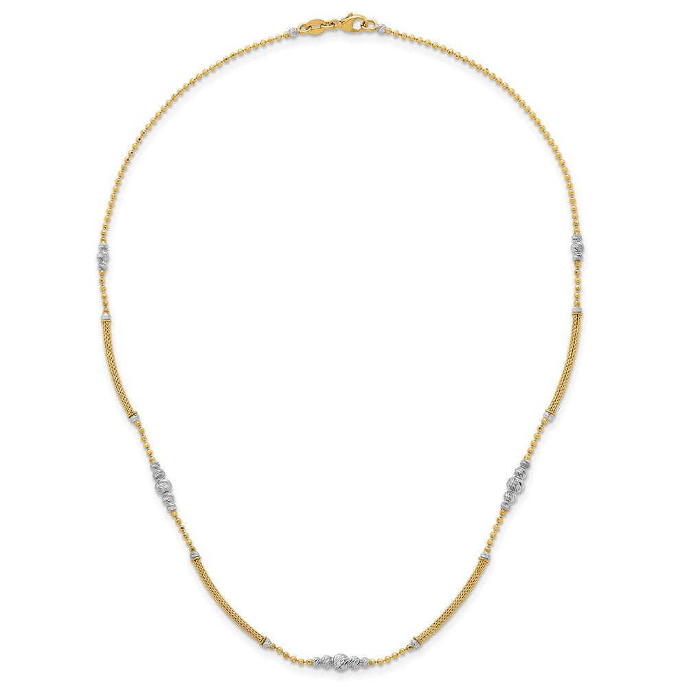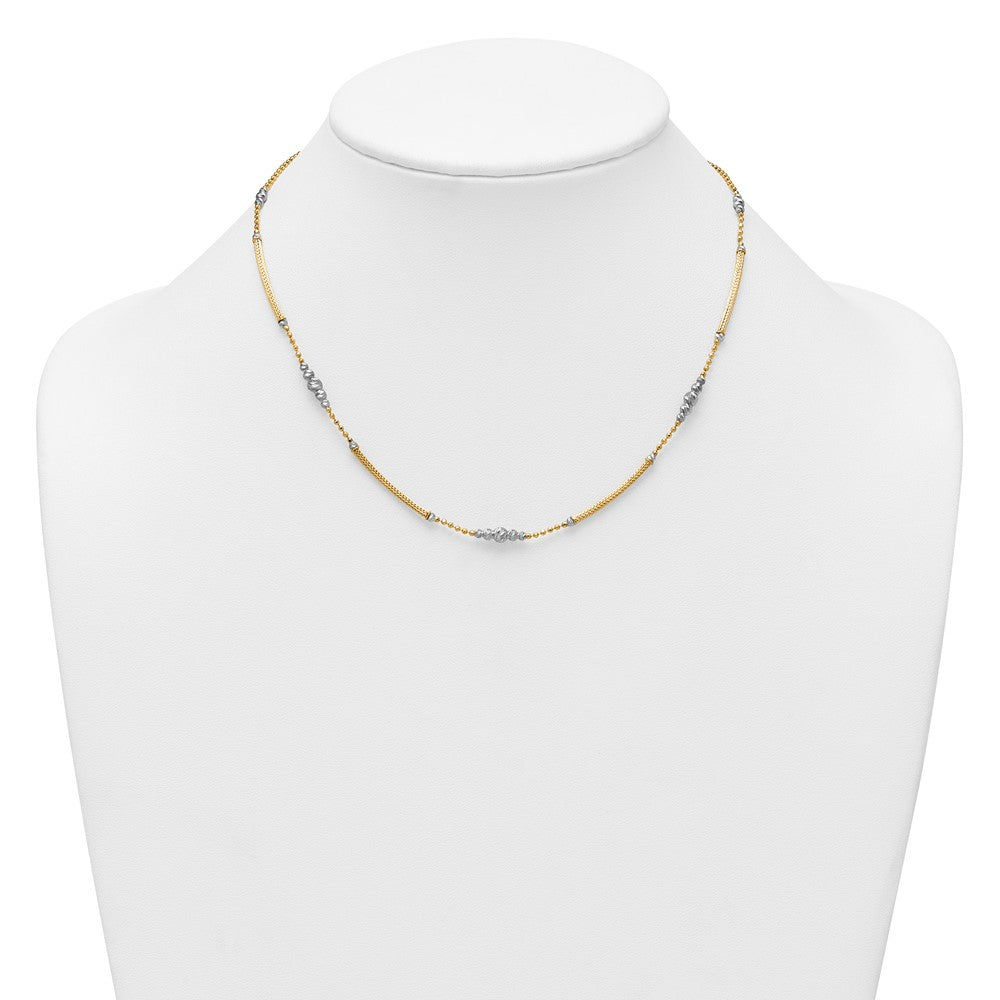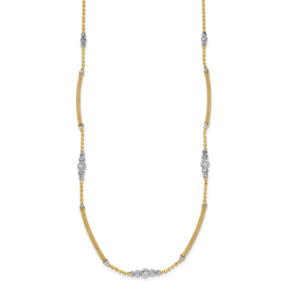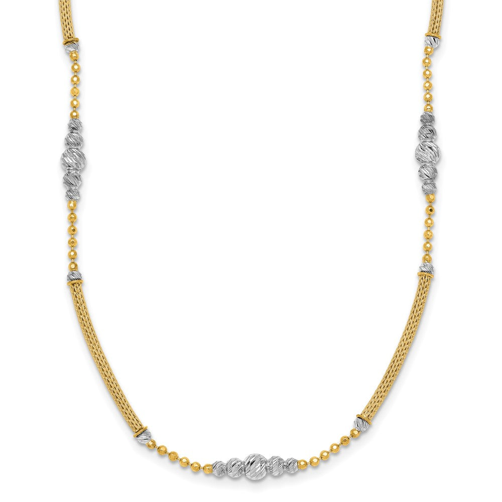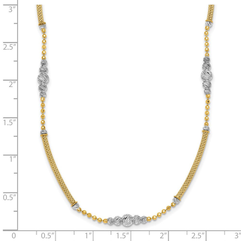 14k Two-Tone Woven Bar Necklace with Diamond-Cut Beads, 16.75