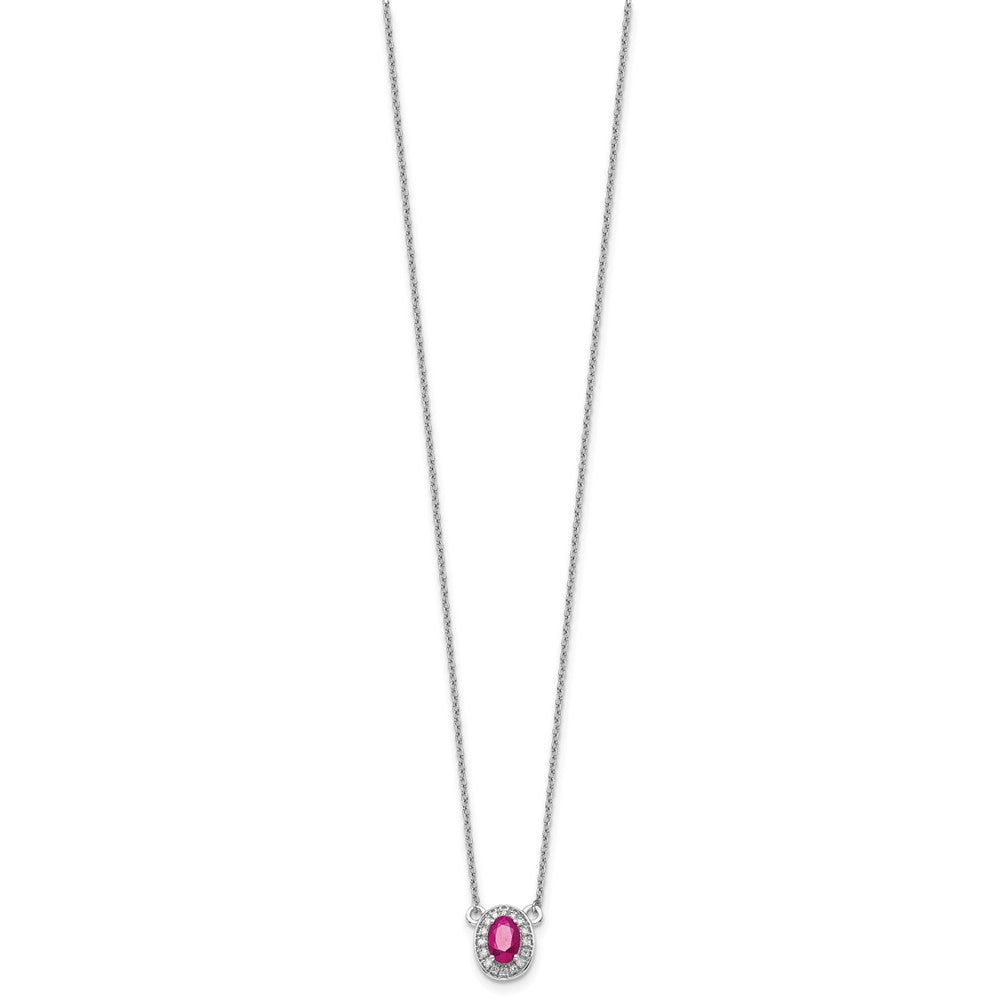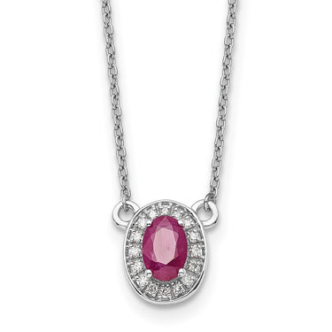 14k White Gold Oval Ruby and Diamond Halo 18 inch Necklace