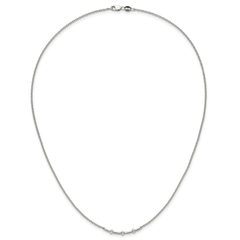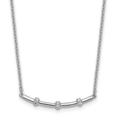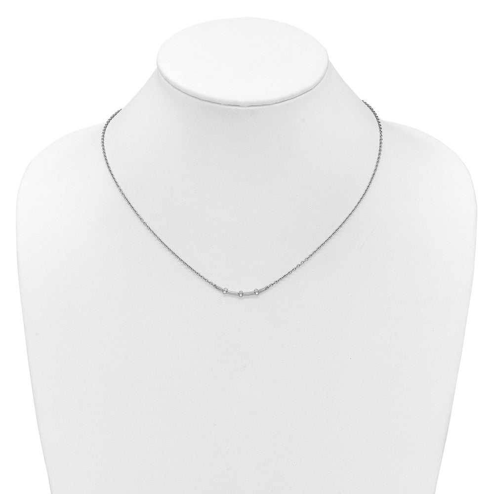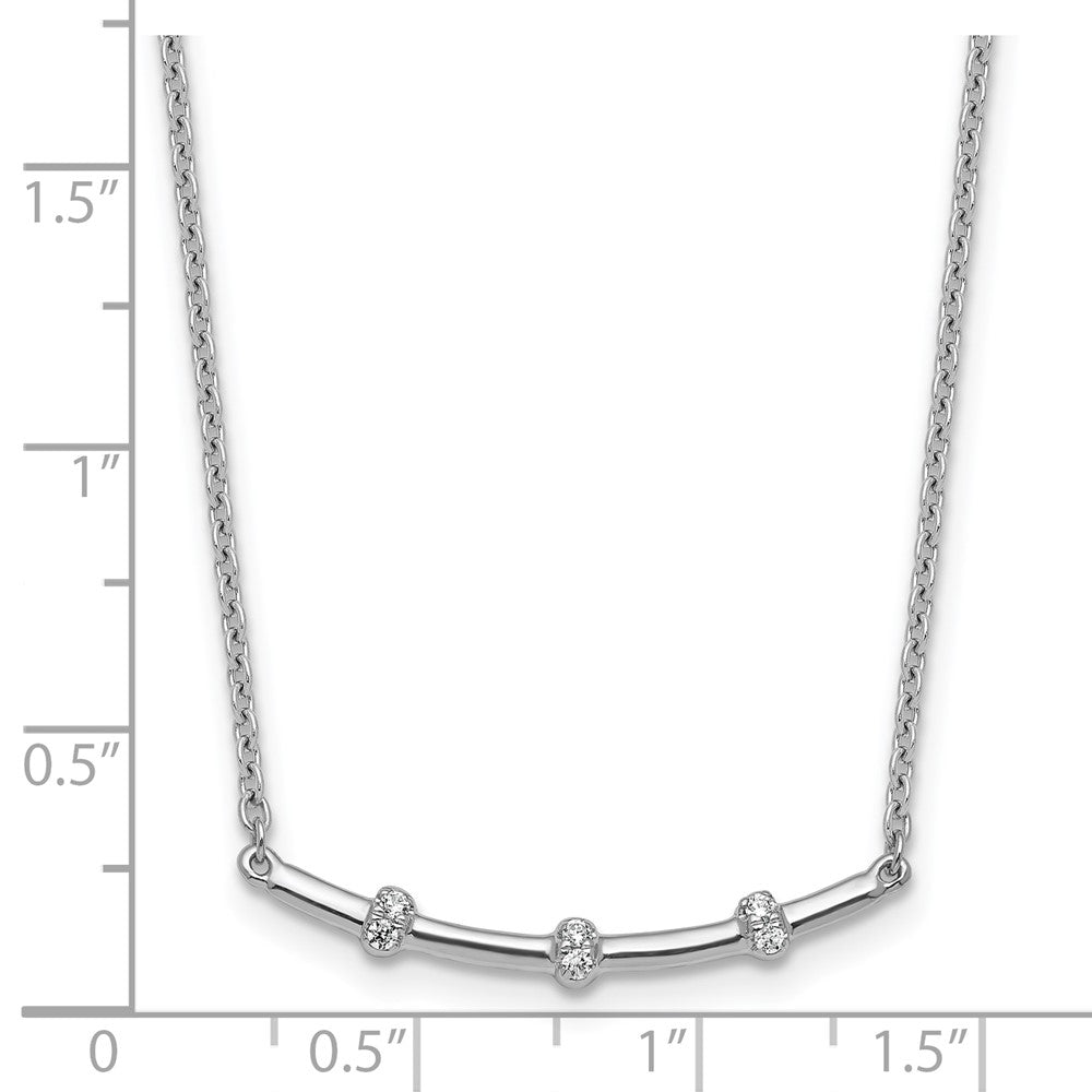 14K White Gold Curved Bar Necklace with Diamond Accent, 18 Inches