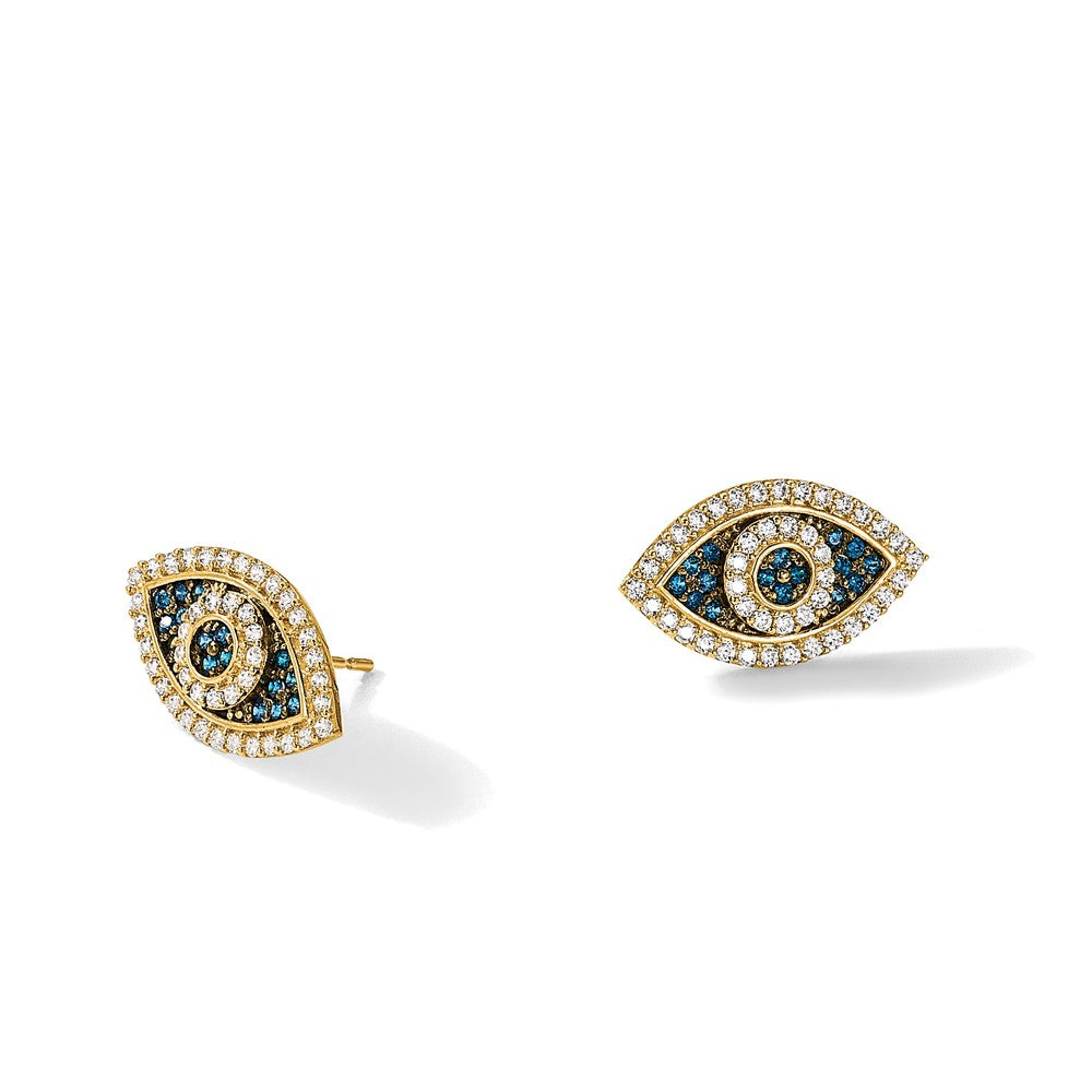 10K Gold Evil Eye Post Earrings with Blue and Clear CZ