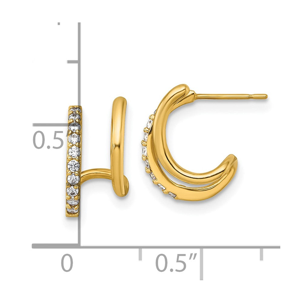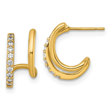 10k Gold Polished Double J-Hoop Earrings with CZ Accents