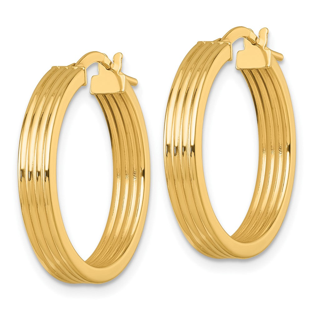 14k Polished and Grooved 4mm Gold Tube Hoop Earrings