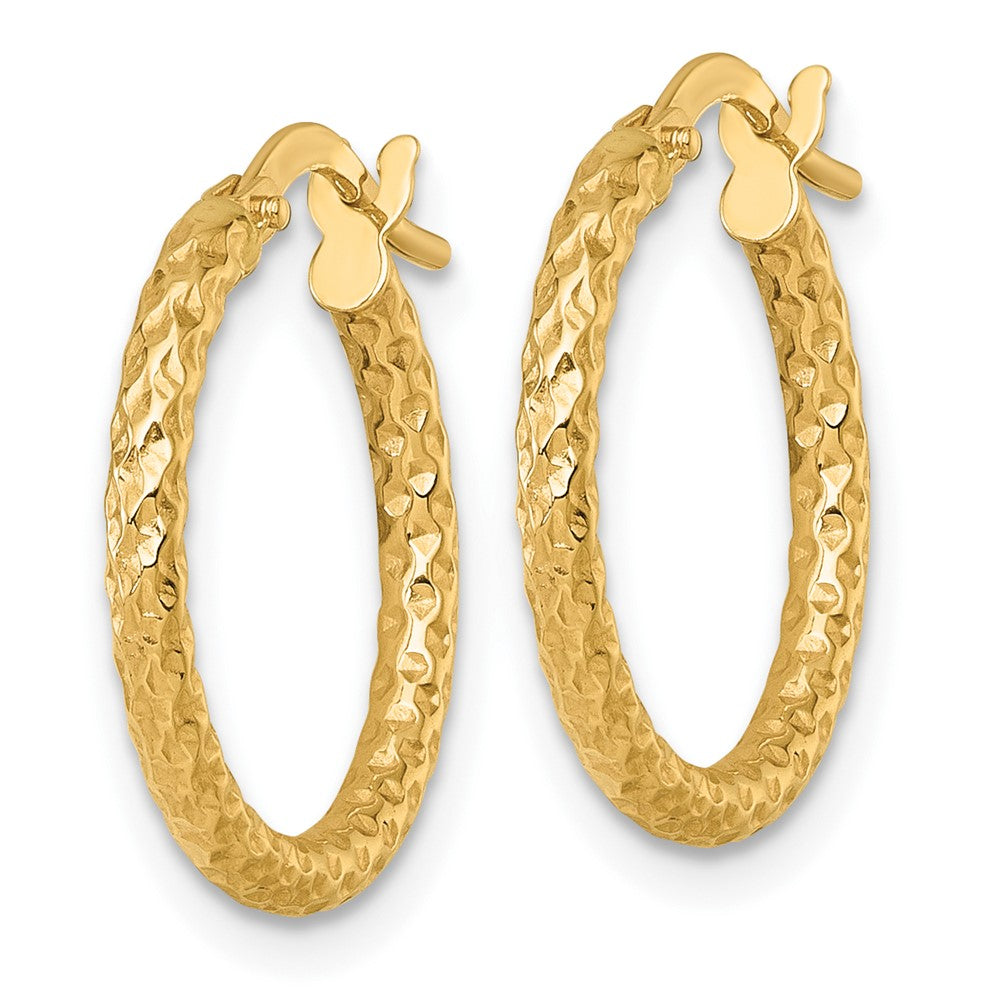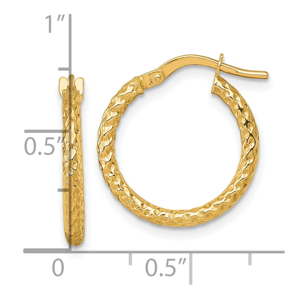 14k Gold Textured Tube Hoop Earrings with Diamond-Cut Detail