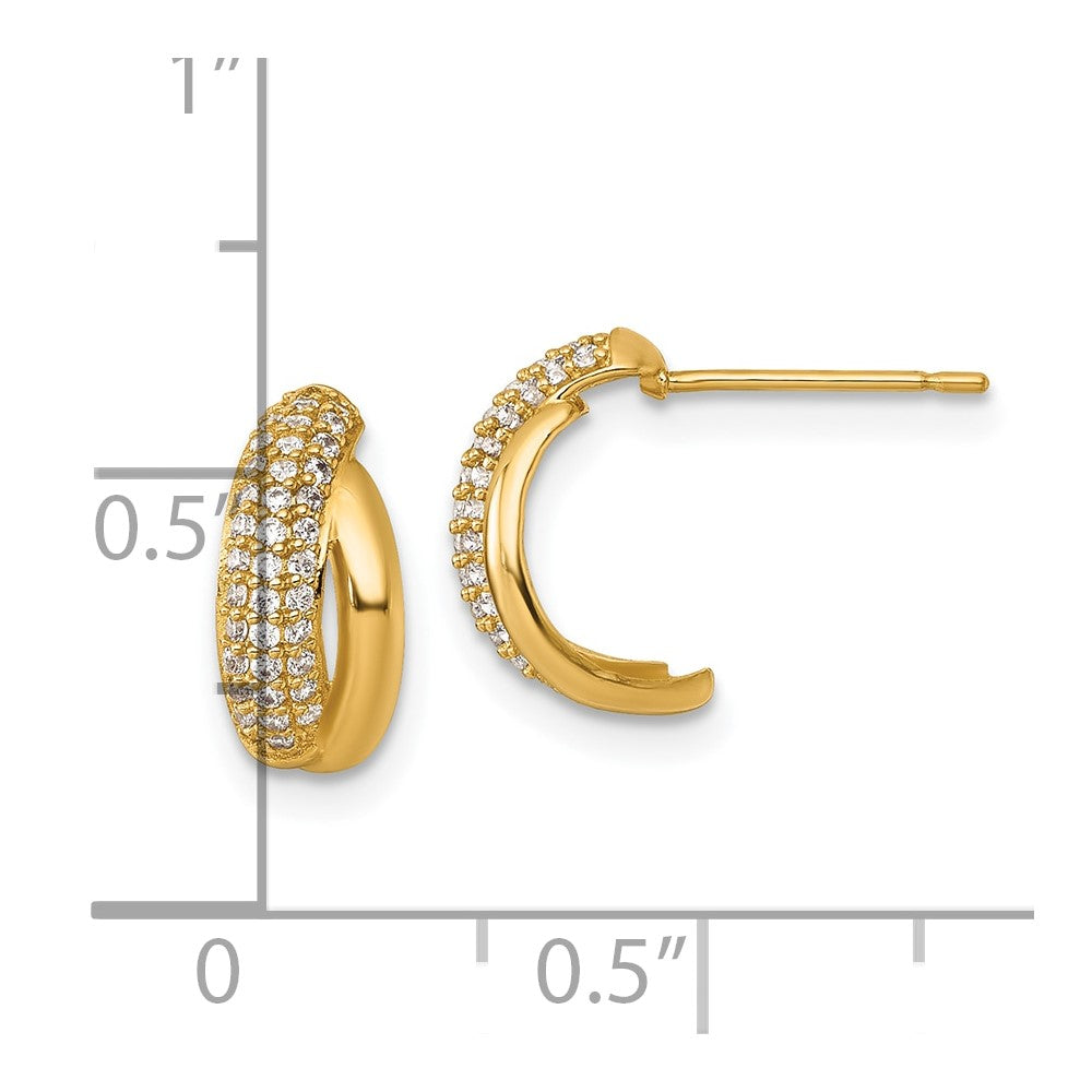 14k Gold Pave CZ J-Hoop Earrings for a Chic Statement Look