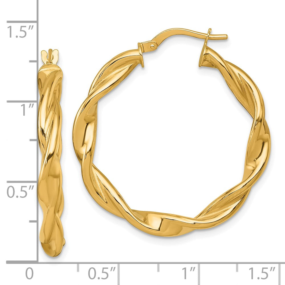 14k Gold Twisted Tube Hoop Earrings - Polished Elegance for Every Occasion