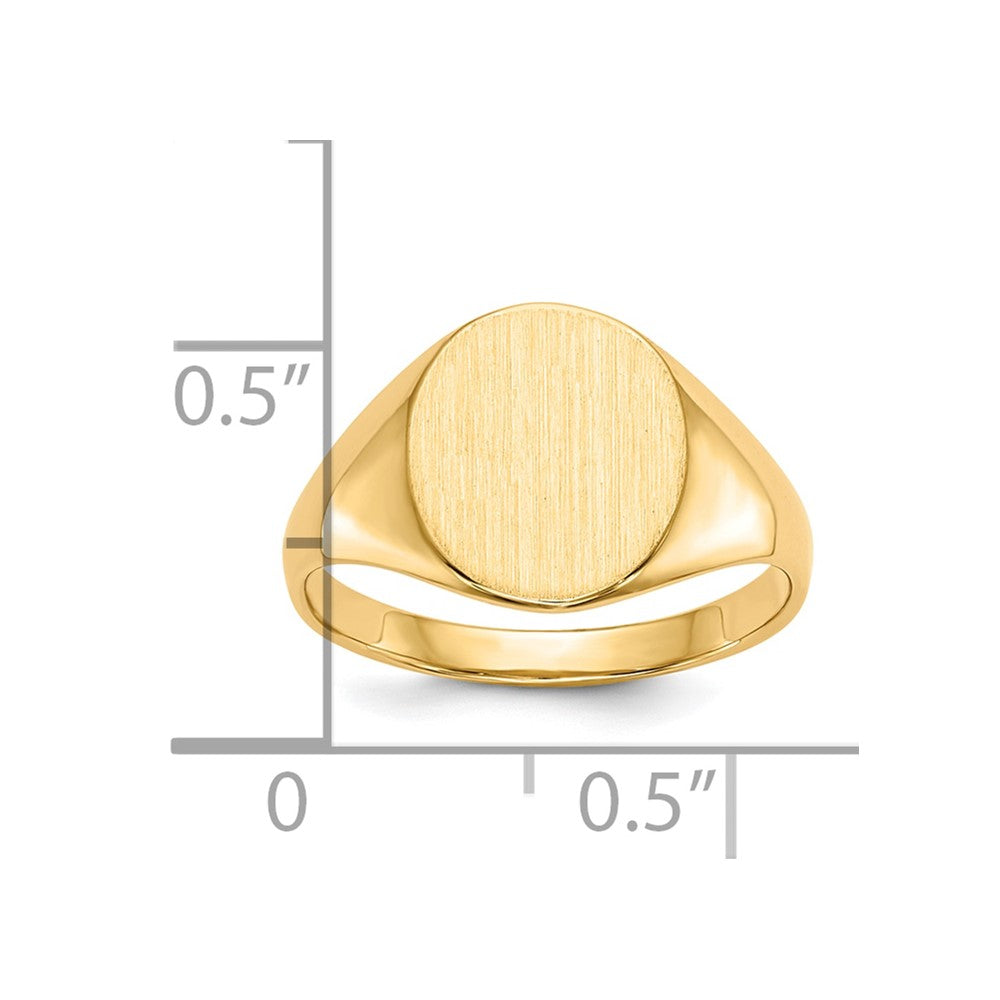 Specifications: Material: Primary - Purity:10K|Finish:Polished & Brushed|Band Width:2 to 11 mm (tapered)|Size (Minimum):3|Size (Maximum):7|Material: Primary:Gold|Sizeable:Yes|Width of Item:2 to 11 mm (tapered)|Engravable:Yes|Product Type:Jewelry|Jewelry Type:Rings|Sold By Unit:Each|Gender:Unisex|Texture:Satin|Profile Type:Open Back|Material: Primary - Color:Yellow|Ring Type:Signet Ring|Ring Top Length:11 mm|Ring Top Width:9.5 mm
