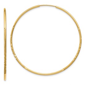 Specifications: Material: Primary - Purity:10K|Finish:Polished|Length of Item:45 mm|Material: Primary:Gold|Width of Item:1.25 mm|Product Type:Jewelry|Jewelry Type:Earrings|Sold By Unit:Pair|Gender:Women's|Texture:Diamond-cut|Material: Primary - Color:Yellow|Earring Closure:Hidden Wire & Catch|Earring Type:Hoop|Diameter Outside:45|Diameter Outside U/M:mm|Earring Style:Endless