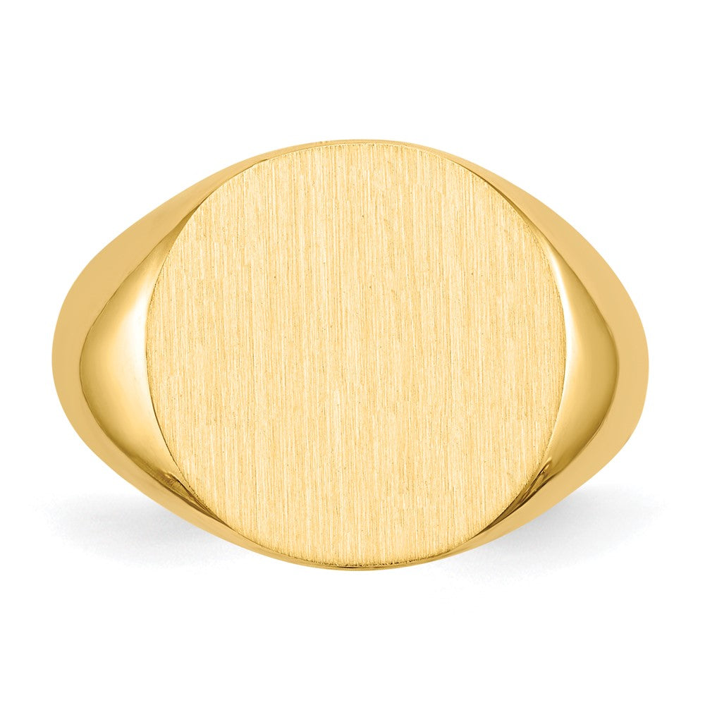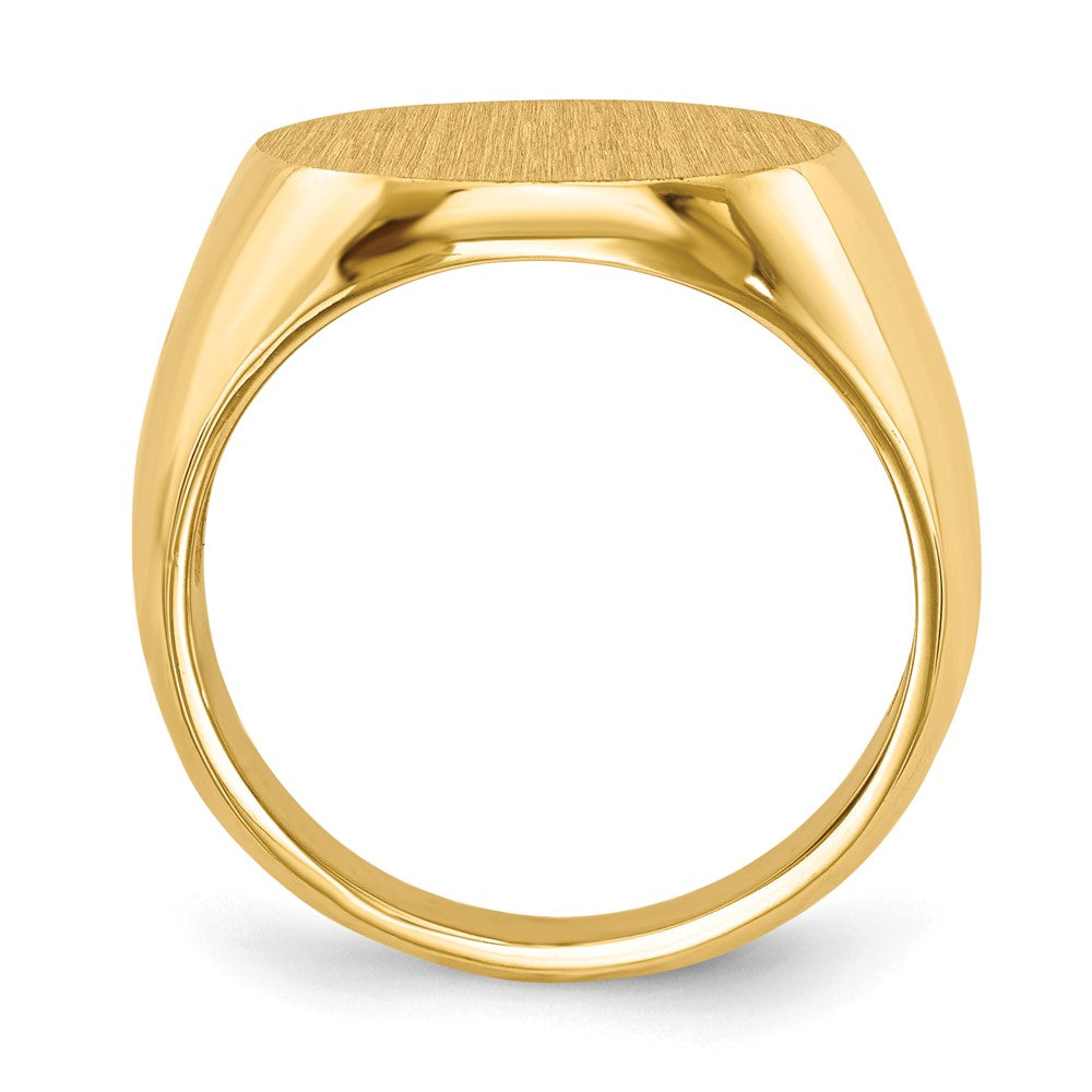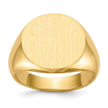 Specifications: Material: Primary - Purity:10K|Finish:Polished & Brushed|Band Width:4 to 15.2 mm (tapered)|Size (Minimum):6|Size (Maximum):10|Material: Primary:Gold|Sizeable:Yes|Width of Item:4 to 15.2 mm (tapered)|Engravable:Yes|Product Type:Jewelry|Jewelry Type:Rings|Sold By Unit:Each|Gender:Men's|Texture:Satin|Profile Type:Open Back|Material: Primary - Color:Yellow|Ring Type:Signet Ring|Ring Top Length:15 mm|Ring Top Width:15.5 mm