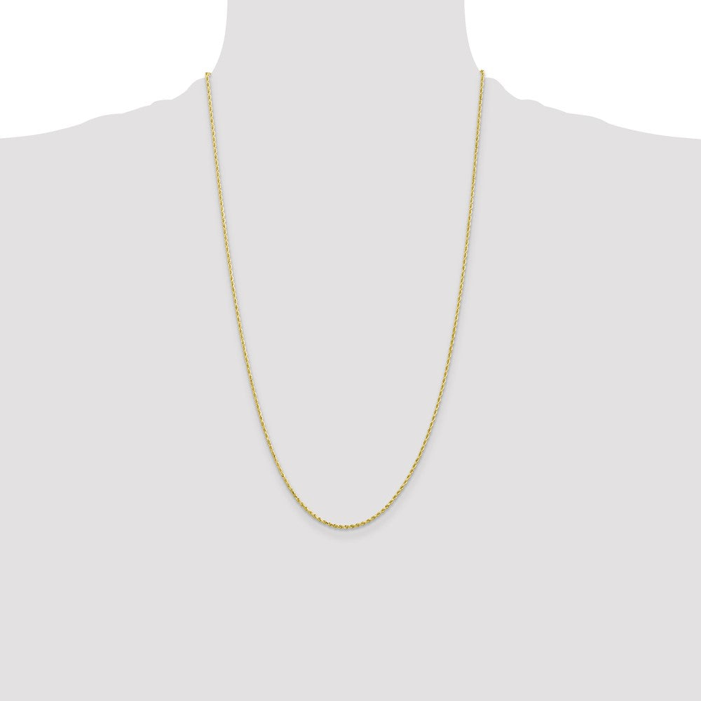 Specifications: Material: Primary - Purity:10K|Finish:Polished|Length of Item:26 in|Chain Length:26 in|Chain Type:Rope|Chain Width:1.5 mm|Clasp /Connector:Lobster|Feature:Solid|Manufacturing Process:Hand Made|Material: Primary:Gold|Width of Item:1.5 mm|Product Type:Jewelry|Jewelry Type:Chains|Sold By Unit:Each|Necklace Type:Chain Styles|Gender:Unisex|Texture:Diamond-cut|Material: Primary - Color:Yellow