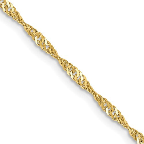 Specifications: Material: Primary - Purity:10K|Finish:Polished|Length of Item:24 in|Chain Length:24 in|Chain Type:Singapore|Chain Width:1.7 mm|Clasp /Connector:Lobster|Feature:Solid|Manufacturing Process:Casted|Material: Primary:Gold|Width of Item:1.7 mm|Product Type:Jewelry|Jewelry Type:Chains|Sold By Unit:Each|Necklace Type:Chain Styles|Gender:Unisex|Material: Primary - Color:Yellow|Manufacturing Process 2:Machine Made
