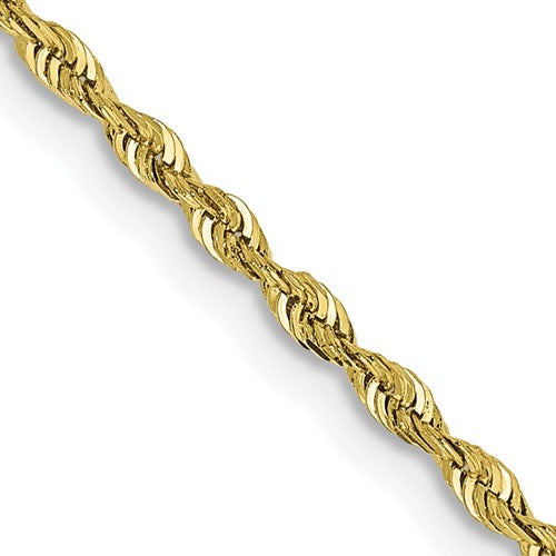 Specifications: Material: Primary - Purity:10K|Finish:Polished|Length of Item:30 in|Chain Length:30 in|Chain Type:Rope|Chain Width:1.85 mm|Clasp /Connector:Lobster|Feature:Solid|Material: Primary:Gold|Width of Item:1.85 mm|Product Type:Jewelry|Jewelry Type:Chains|Sold By Unit:Each|Necklace Type:Chain Styles|Gender:Unisex|Texture:Diamond-cut|Material: Primary - Color:Yellow