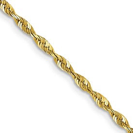 Specifications: Material: Primary - Purity:10K|Finish:Polished|Length of Item:18 in|Chain Length:18 in|Chain Type:Rope|Chain Width:2 mm|Clasp /Connector:Lobster|Feature:Solid|Material: Primary:Gold|Width of Item:2 mm|Product Type:Jewelry|Jewelry Type:Chains|Sold By Unit:Each|Necklace Type:Chain Styles|Gender:Unisex|Texture:Diamond-cut|Material: Primary - Color:Yellow|Feature 2:Lightweight
