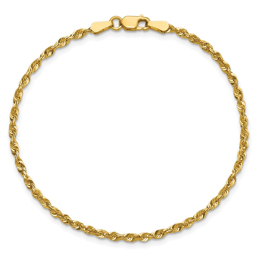Specifications: Material: Primary - Purity:10K|Finish:Polished|Length of Item:10 in|Chain Length:10 in|Chain Type:Rope|Chain Width:2.25 mm|Clasp /Connector:Lobster|Feature:Solid|Material: Primary:Gold|Width of Item:2.25 mm|Product Type:Jewelry|Jewelry Type:Chains|Sold By Unit:Per Inch|Anklet Type:Chain Styles|Gender:Unisex|Texture:Diamond-cut|Material: Primary - Color:Yellow|Feature 2:Lightweight