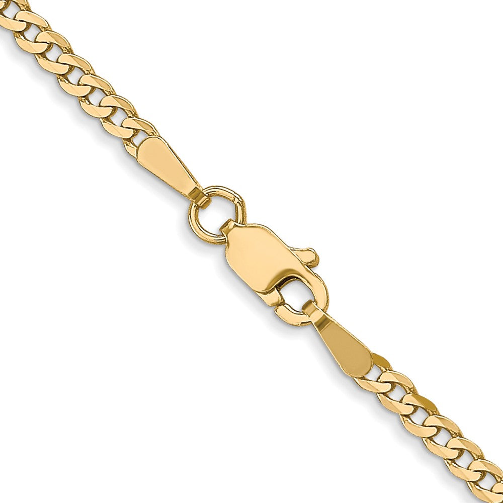 Specifications: Material: Primary - Purity:10K|Finish:Polished|Length of Item:26 in|Chain Length:26 in|Chain Type:Curb|Chain Width:2.2 mm|Clasp /Connector:Lobster|Feature:Solid|Manufacturing Process:Casted|Material: Primary:Gold|Width of Item:2.2 mm|Product Type:Jewelry|Jewelry Type:Chains|Sold By Unit:Each|Necklace Type:Chain Styles|Gender:Unisex|Profile Type:Flat|Material: Primary - Color:Yellow|Edge Type:Beveled|Manufacturing Process 2:Machine Made