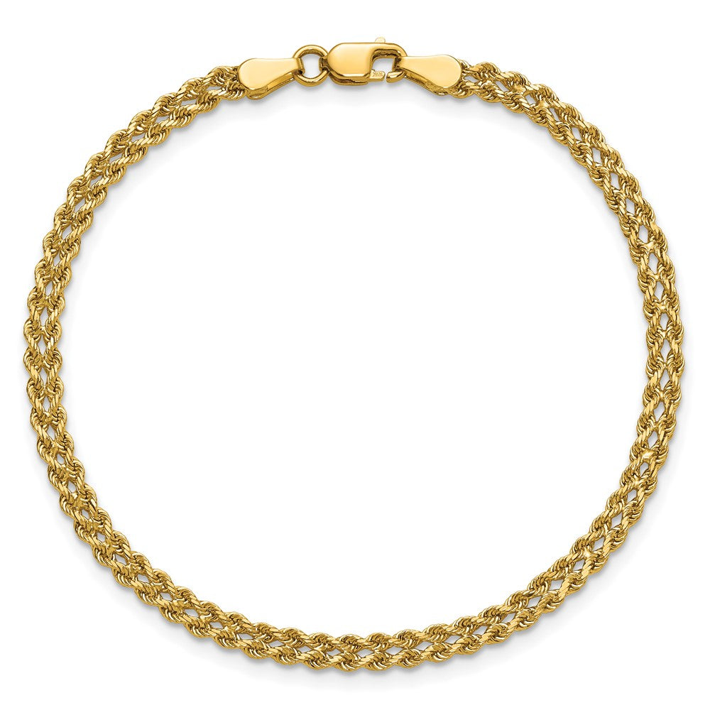 10k 3.0mm Wide Double Strand Rope Bracelet