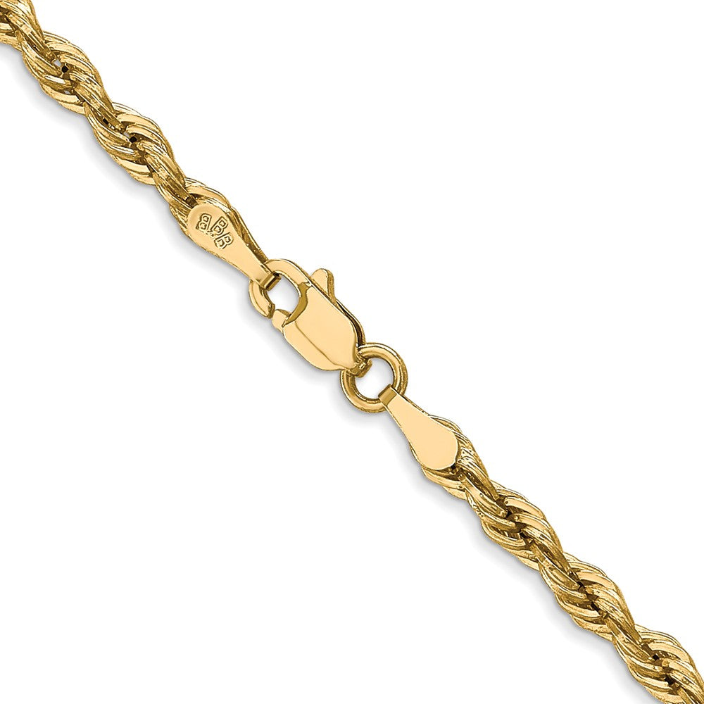 Specifications: Material: Primary - Purity:10K|Finish:Polished|Length of Item:20 in|Chain Length:20 in|Chain Type:Rope|Chain Width:3 mm|Clasp /Connector:Lobster|Feature:Semi-Solid|Material: Primary:Gold|Width of Item:3 mm|Product Type:Jewelry|Jewelry Type:Chains|Sold By Unit:Each|Necklace Type:Chain Styles|Gender:Unisex|Material: Primary - Color:Yellow
