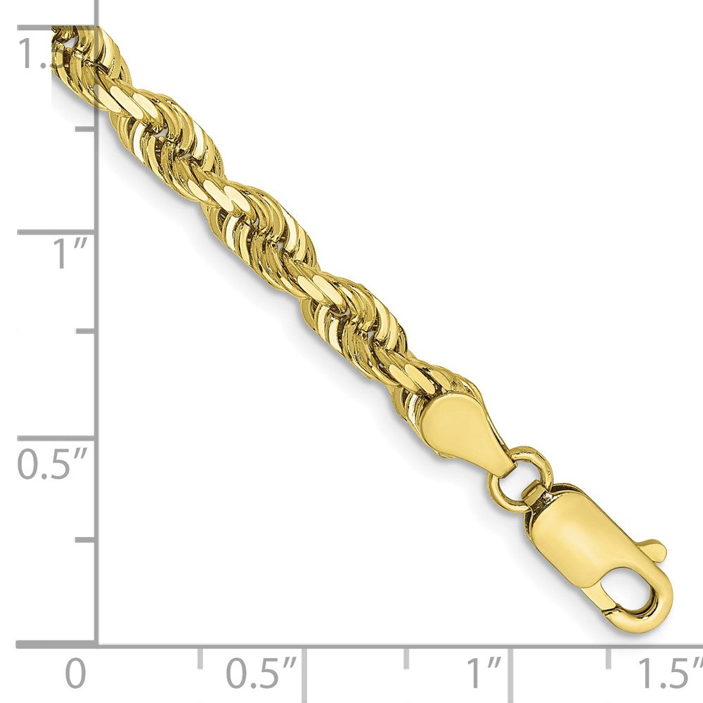 Specifications: Material: Primary - Purity:10K|Finish:Polished|Length of Item:8 in|Chain Length:8 in|Chain Type:Rope|Chain Width:4.5 mm|Clasp /Connector:Lobster|Feature:Solid|Material: Primary:Gold|Width of Item:4.5 mm|Product Type:Jewelry|Jewelry Type:Chains|Sold By Unit:Each|Bracelet Type:Chain Styles|Gender:Unisex|Texture:Diamond-cut|Material: Primary - Color:Yellow