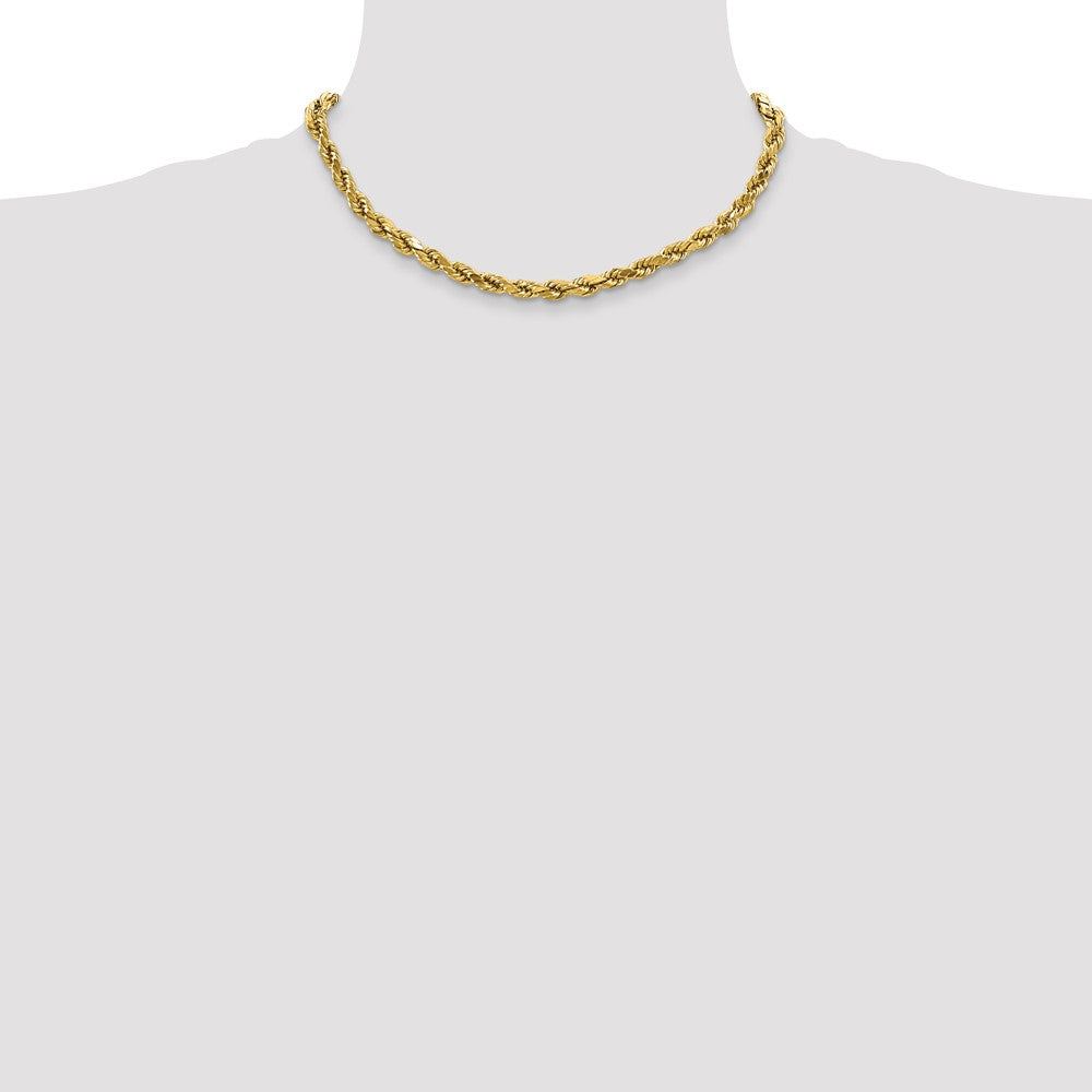 Specifications: Material: Primary - Purity:10K|Finish:Polished|Length of Item:16 in|Chain Length:16 in|Chain Type:Rope|Chain Width:4 mm|Clasp /Connector:Lobster|Feature:Semi-Solid|Material: Primary:Gold|Width of Item:4 mm|Product Type:Jewelry|Jewelry Type:Chains|Sold By Unit:Each|Necklace Type:Chain Styles|Gender:Unisex|Texture:Diamond-cut|Material: Primary - Color:Yellow
