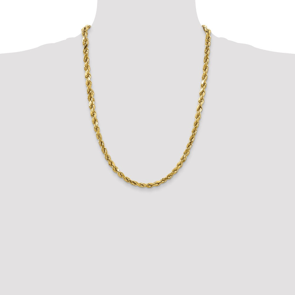 Specifications: Material: Primary - Purity:10K|Finish:Polished|Length of Item:24 in|Chain Length:24 in|Chain Type:Rope|Chain Width:4 mm|Clasp /Connector:Lobster|Feature:Semi-Solid|Material: Primary:Gold|Width of Item:4 mm|Product Type:Jewelry|Jewelry Type:Chains|Sold By Unit:Each|Necklace Type:Chain Styles|Gender:Unisex|Texture:Diamond-cut|Material: Primary - Color:Yellow