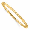 Specifications: Material: Primary - Purity:10K|Finish:Polished|Length of Item:8.5 in|Chain Length:8.5 in|Chain Width:4 mm|Clasp /Connector:Slip On (No Clasp)|Feature:Slip On|Manufacturing Process:Tubing|Material: Primary:Gold|Width of Item:4 mm|Product Type:Jewelry|Jewelry Type:Bracelets|Sold By Unit:Each|Bracelet Type:Bangle|Gender:Women's|Texture:Twisted|Profile Type:Round|Material: Primary - Color:Yellow|Feature 2:Hollow