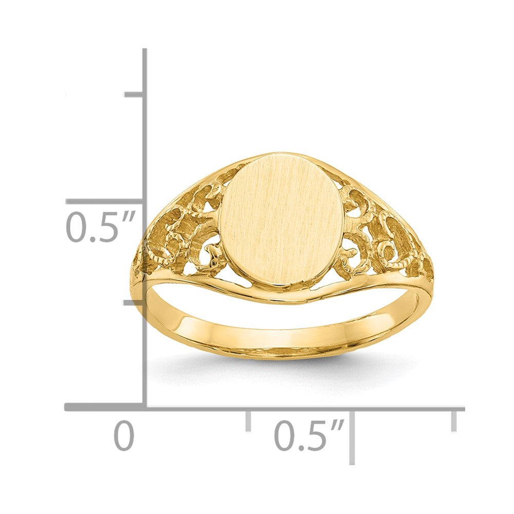 10k 8.5x7.5mm Satin Open Back Filigree Signet Ring