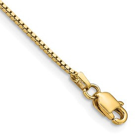 Specifications: Material: Primary - Purity:10K|Finish:Polished|Length of Item:7 in|Chain Length:7 in|Chain Type:Box|Chain Width:0.95 mm|Clasp /Connector:Lobster|Clasp Thickness (Female end):0.9 mm|Clasp Thickness (Male end):2.2 mm|Clasp Width (Female end):1.9 mm|Clasp Width (Male end):3.8 mm|Feature:Solid|Manufacturing Process:Machine Made|Material: Primary:Gold|Width of Item:0.95 mm|Product Type:Jewelry|Jewelry Type:Chains|Sold By Unit:Each|Bracelet Type:Chain Styles|Gender:Unisex|Material: Primary - Color:Yellow
