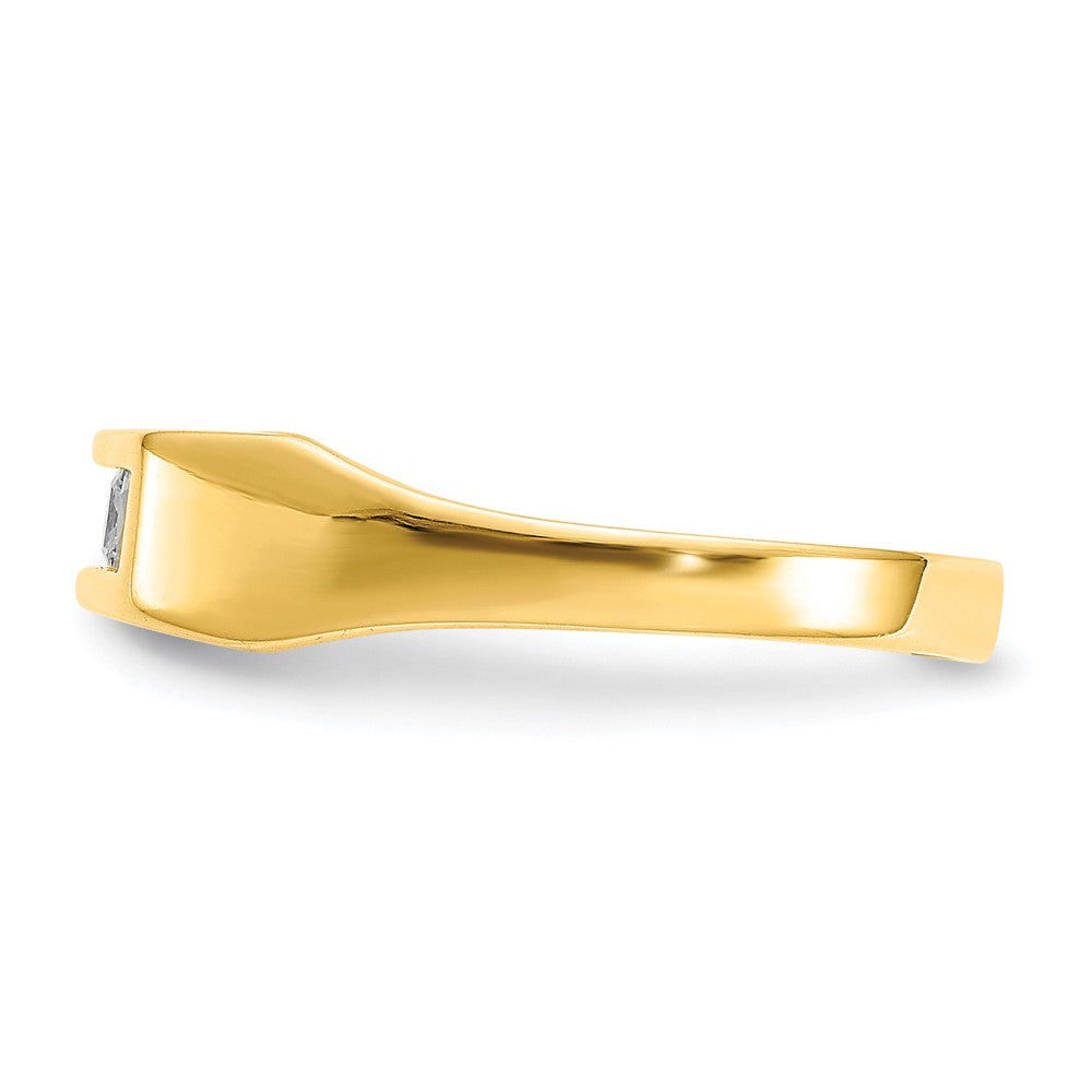 Specifications: Material: Primary - Purity:10K|Finish:Polished|Stone Type_1:Cubic Zirconia (CZ)|Stone Color_1:White|Band Width:1 to 3 mm (tapered)|Feature:Solid|Manufacturing Process:Casted|Material: Primary:Gold|Stone Treatment_1:Synthetic|Product Type:Jewelry|Jewelry Type:Rings|Sold By Unit:Each|Material: Primary - Color:Yellow|Ring Type:Rings with Stones|Stone Creation Method_1:Synthetic