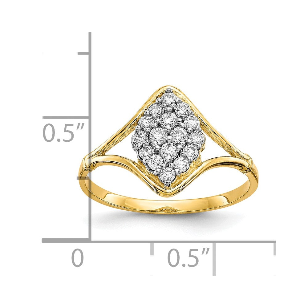 Specifications: Material: Primary - Purity:10K|Finish:Polished|Stone Type_1:Cubic Zirconia (CZ)|Stone Color_1:White|Band Width:1 mm|Feature:Solid|Manufacturing Process:Casted|Material: Primary:Gold|Stone Treatment_1:Synthetic|Product Type:Jewelry|Jewelry Type:Rings|Sold By Unit:Each|Material: Primary - Color:Yellow|Ring Type:Fashion|Ring Top Length:12 mm|Stone Creation Method_1:Synthetic