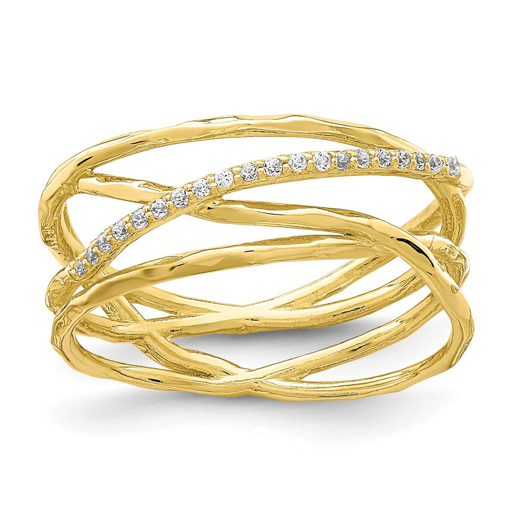 Specifications: Material: Primary - Purity:10K|Finish:Polished|Stone Type_1:Cubic Zirconia (CZ)|Stone Color_1:White|Stone Quantity_1:21|Band Width:4.8 to 7.43 mm (tapered)|Feature:Solid|Material: Primary:Gold|Sizeable:Yes|Stone Shape_1:Round|Stone Treatment_1:Synthetic|Thickness:< 1 mm|Product Type:Jewelry|Jewelry Type:Rings|Sold By Unit:Each|Material: Primary - Color:Yellow|Ring Type:Fashion|Stone Creation Method_1:Synthetic