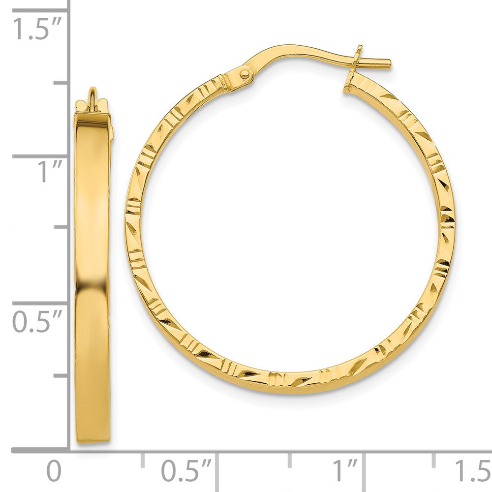 10k Diamond Cut Edge Large 3mm Polished Hoop Earrings
