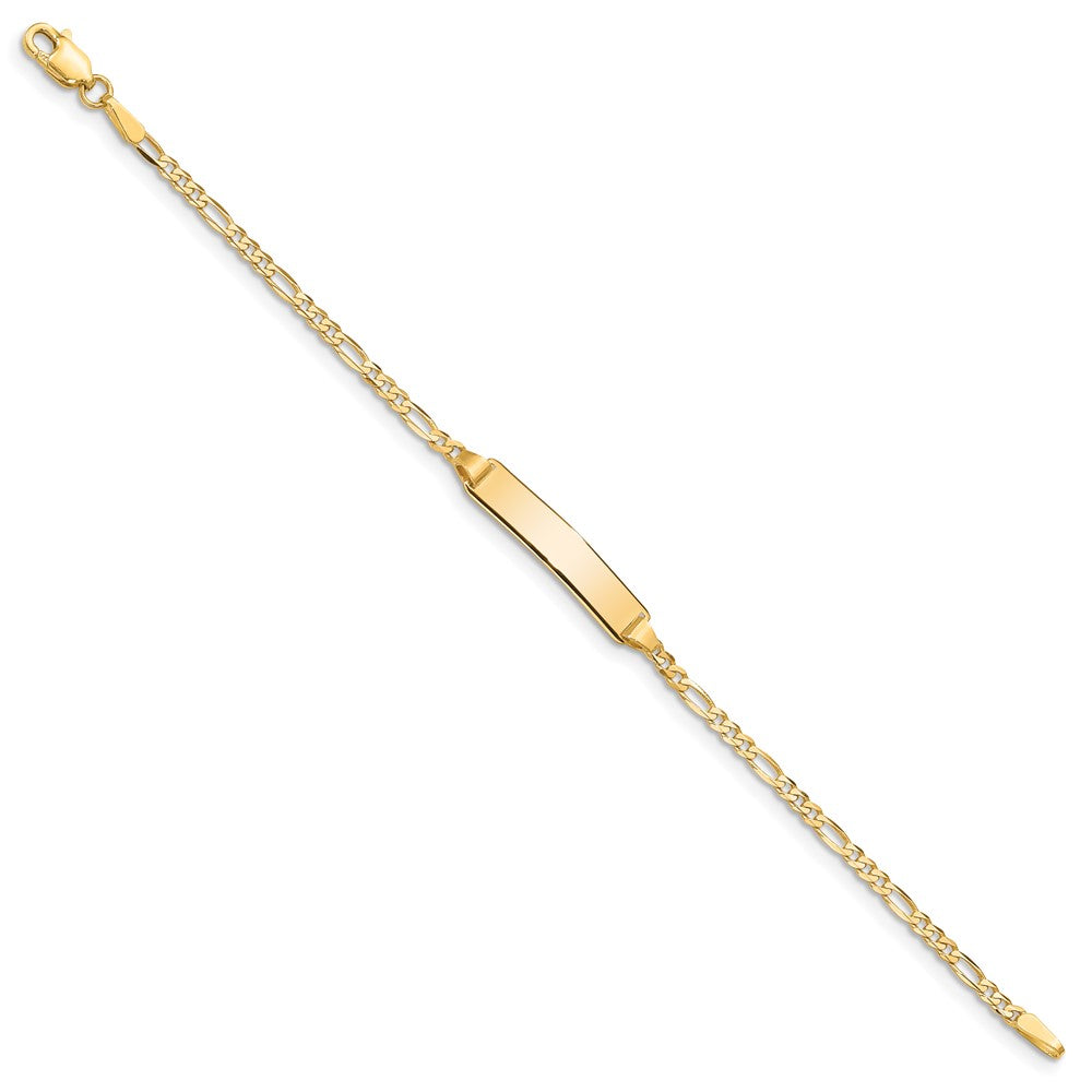 Specifications: Material: Primary - Purity:10K|Stone Quantity_1:1|Length of Item:5.5 in|Stone Setting_1:|Chain Length:5.5 in|Chain Type:Figaro|Chain Width:2.25 mm|Charm/Element Length:21.43 mm|Charm/Element Width:4.35 mm|Clasp /Connector:Lobster|Feature:Solid|Material: Primary:Gold|Stone Shape_1:TBD|Stone Size_1:4.5 x 2.25 mm|Width of Item:5 mm|Engravable:Yes|Product Type:Jewelry|Jewelry Type:Bracelets|Sold By Unit:Each|Bracelet Type:ID Bracelets|Material: Primary - Color:Yellow|Items per Pack:1|Stone Type (Other)_1:Side Stone Mounting(s)