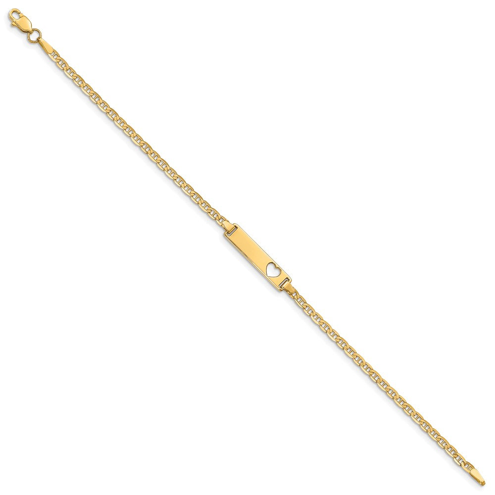 Specifications: Material: Primary - Purity:10K|Finish:Polished|Length of Item:8 in|Chain Length:8 in|Chain Type:Anchor|Chain Width:2.4 mm|Charm/Element Length:20 mm|Charm/Element Width:5 mm|Clasp /Connector:Lobster|Feature:Solid|Material: Primary:Gold|Width of Item:5 mm|Engravable:Yes|Product Type:Jewelry|Jewelry Type:Chains|Sold By Unit:Each|Bracelet Type:ID Bracelets|Gender:Unisex|Material: Primary - Color:Yellow